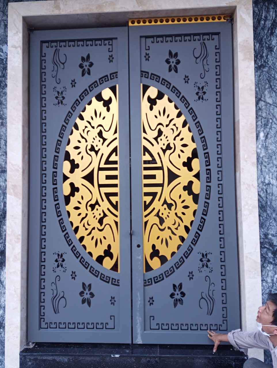 Cửa inox hoa văn CNC: mang phong cách nghệ thuật, được ưa chuộng trong kiến trúc nhà phố.