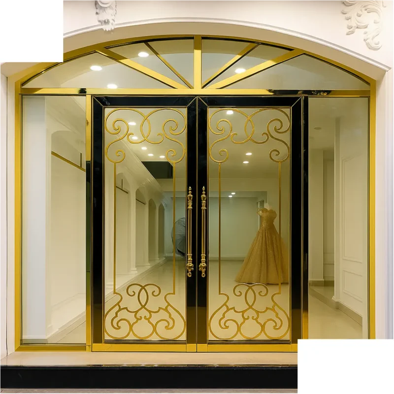 Cửa inox mạ vàng PVD: Tạo vẻ sang trọng, thường được sử dụng trong khách sạn, showroom, khu nghỉ dưỡng cao cấp.