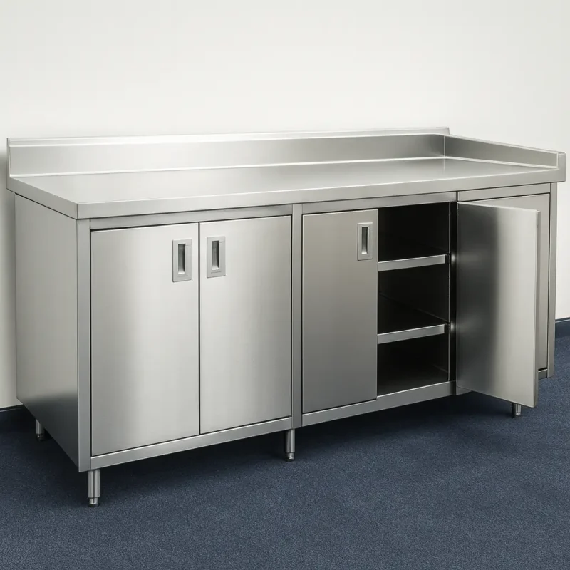 Tủ inox công nghiệp là thiết bị được làm từ inox 304 hoặc inox 201, sử dụng trong khu bếp để bảo quản đồ dùng, thực phẩm, thiết bị, hoặc hỗ trợ quy trình chế biến.